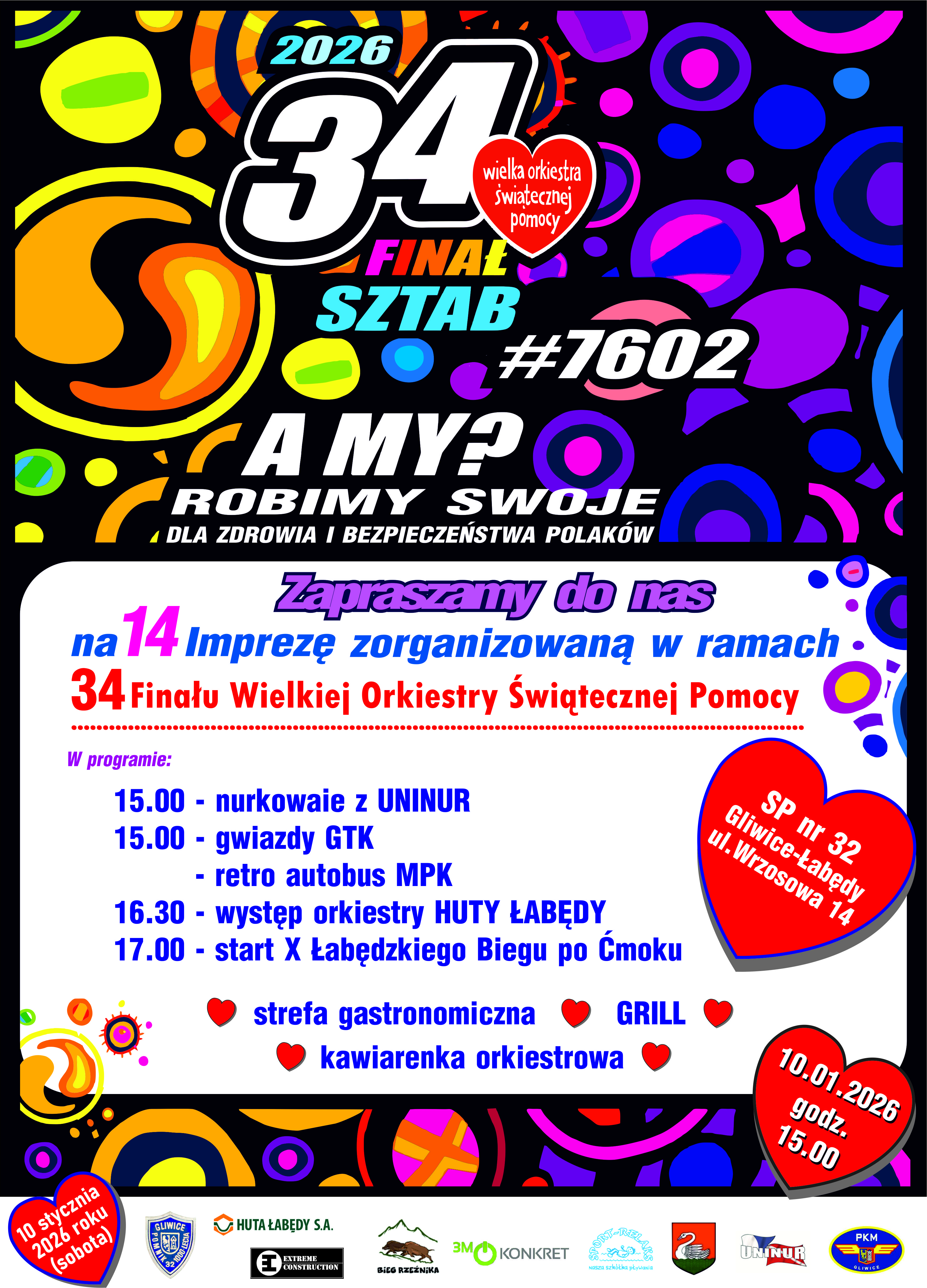 Serdecznie zapraszamy w najbliższą sobotę, tj. 10 stycznia, na Łabędzki Bieg po Ćmoku organizowany w Zespole Szkolno-Przedszkolnym nr 9 w Gliwicach w ramach 34. Finału Wielkiej Orkiestry Świątecznej Pomocy.